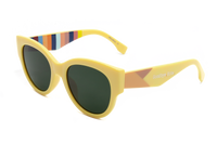 MONTURA La montura está hecha de policarbonato siguiendo estrictos procesos de fabricación, lo que hace que nuestras Odry V125 sean unas gafas flexibles, livianas y altamente resistentes. Las Odry tienen los colores que hacen inconfundibles a las Goodbye, Rita. en el interior de las varillas. Teniendo en el exterior de éstas un diseño en triangular en tres colores. pero lo que las hace realmente diferentes es su elegante acabado en brillo amarillo junto con las lentes ahumadas verdes.